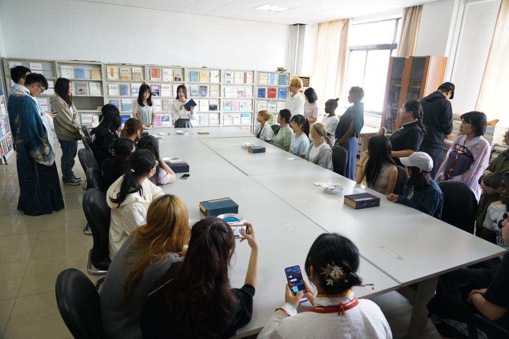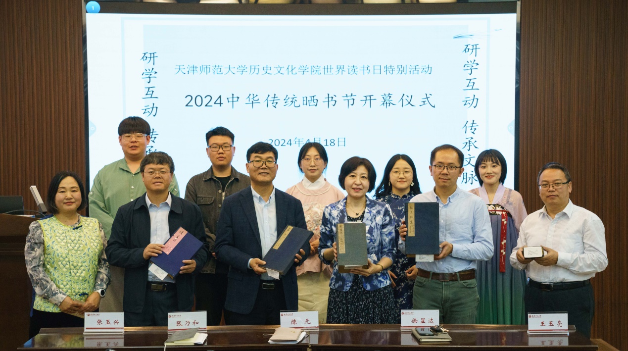 为深入贯彻落实习近平总书记视察天津重要讲话精神,积极践行总书记四个“善作善成”的重要要求,在推动文化传承发展上善作善成,落实完成历史学专业图书馆古籍资源整理、清点及典藏入新书柜等工作,更好发挥古籍在传承和弘扬中华优秀传统文化中的独特作用,在第29个世界读书日的到来之际,4月18日下午tyc522cc太阳成集团在公司学术报告厅举办 “研学互动 传承文脉”中华传统晒书节开幕式。出席活动的有tyc522cc太阳成集团全体领导班子成员、教师生代表共80人参加了本次活动。国际交流党委副书记吕由带领来自6个国家的11名职工受邀来到活动现场。