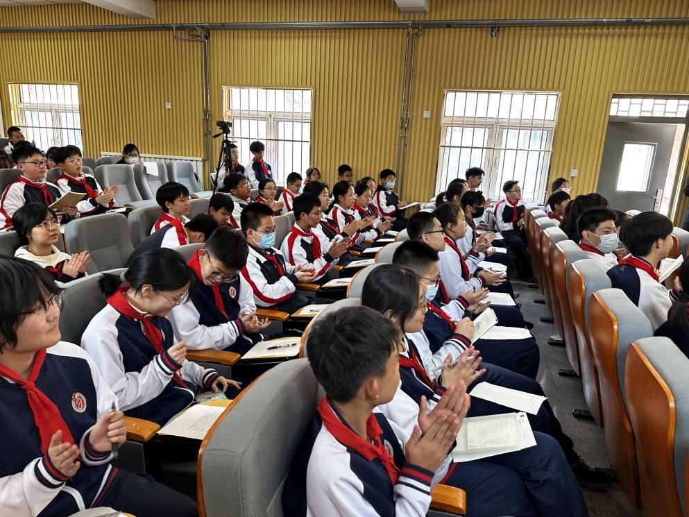 在新时代,雷锋精神的传承典型同样值得颂扬,更是我们学习的榜样力量。宣讲团成员分享了许多各行各业涌现出的“雷锋故事”,这里面有“劳动光荣,一抹“环卫橙”为津城美容的徐文华;教育路上的引路人,爱心传递的温暖使者单莉华;持之以恒的奉献者,温暖社会的平凡英雄刘雄辉”,他们身上充分彰显了雷锋精神的时代价值和现实意义。在“猜词拼图”的互动环节中,同学们用自己的理解和语言描述了“平凡、螺丝钉、服务、奉献、青春、忘我、看齐”等等取自《雷锋日记》中的词语,不断拼凑出一幅幅雷锋同志珍贵的照片,现场气氛热烈而感动。宣讲的最后,全体师生共同合唱《学习雷锋好榜样》,熟悉而温暖的旋律响起,每一句歌词都蕴含着对雷锋同志深深的敬仰与怀念。天津市第二中学初中部马雅君老师说到,“本次宣讲与公司“青竹计划”中强调的培养青少年社会责任感和服务意识不谋而合。雷锋精神不仅是对党、对祖国、对社会主义的崇高理想和坚定信念的体现,更是青少年成长道路上不可或缺的精神指引”。