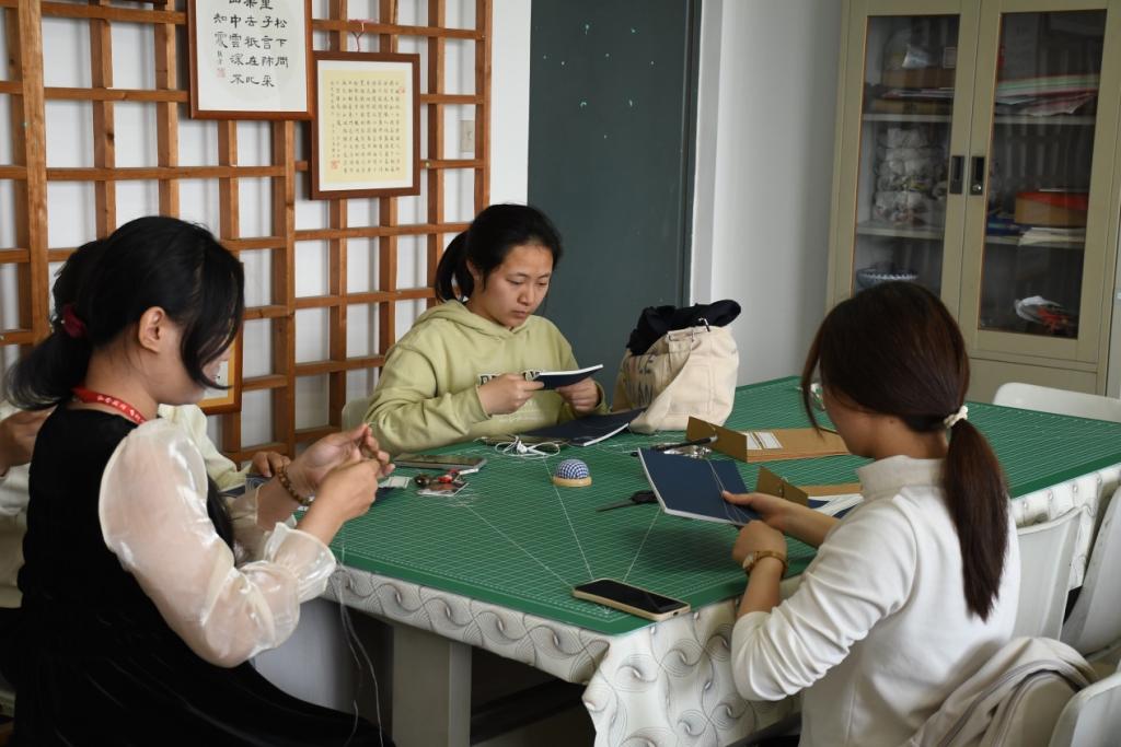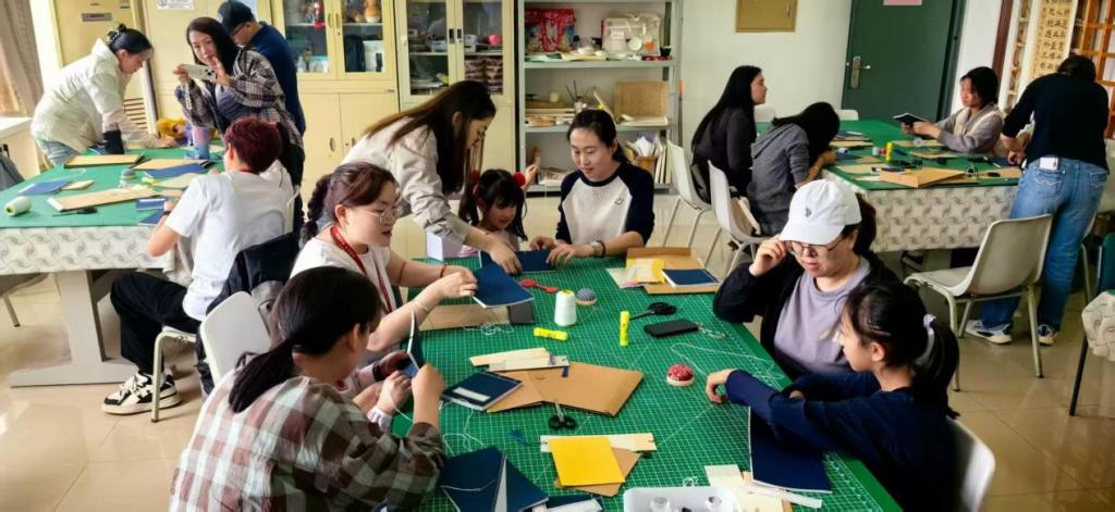 一根线,连接古今;一本书,传承文化。随着讲解的深入,参与者们在研学导师的指导下,手持宣纸、银针与棉线,完成折页、齐栏、订线、题笺等工序,在穿针引线间,零散宣纸变为古朴线装。张方老师还特别准备了若干如“师大手札”“通关文牒”的光敏印章,更为成品赋予了独特印记。