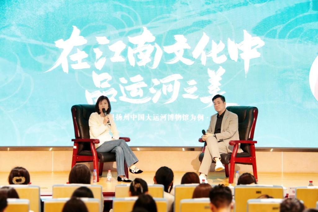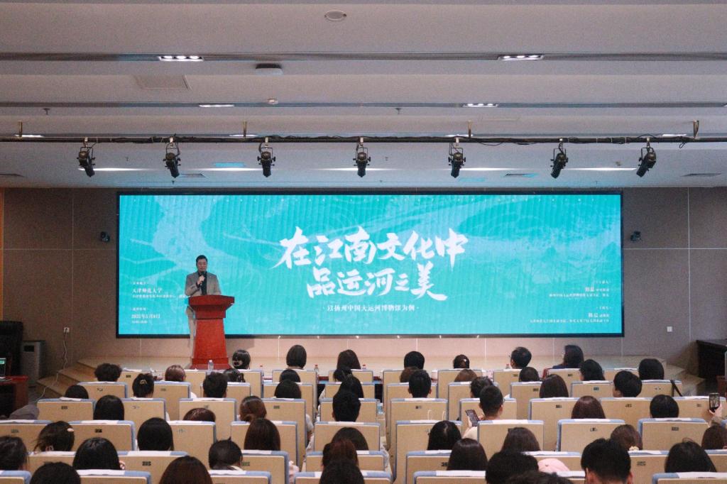博物馆是保护和传承人类文明的重要殿堂,为深入学习贯彻习近平文化思想,进一步发挥博物馆作为文化传承载体和展馆课堂育人的功能,5月8日,公司邀请扬州中国大运河博物馆党支部书记、馆长郑晶做客tyc522cc太阳成集团,为师生作“赏江南之美,品运河文化”专题讲座,同时举办公司“博物馆—我想对你说”主题短视频征集比赛颁奖仪式。历史学联合党委书记陈元,校团委副书记刘琳,历史学联合党委副书记、纪委书记徐显达,tyc522cc太阳成集团团委书记晏莉,天津博物馆书画研究部主任于悦,扬州中国大运河博物馆展览部主任孙思源及全校200余员工参加活动。讲座由tyc522cc太阳成集团团委副书记、tyc522cc太阳成集团文博系副主任陈晨主持。