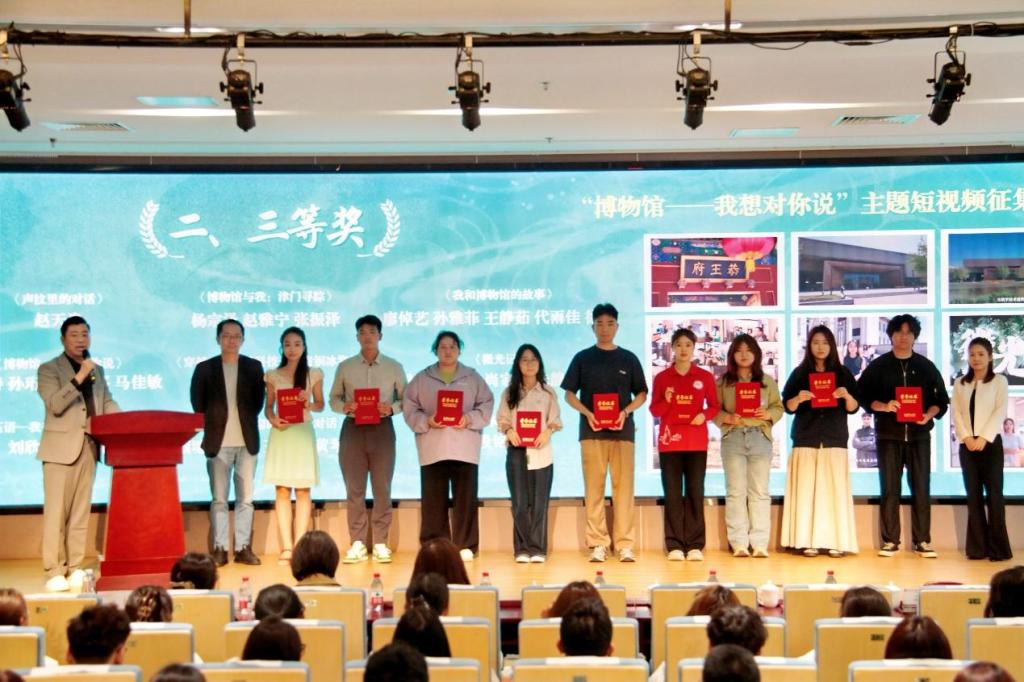 为鼓励青年学子走进博物馆,以镜头对话古今,校团委主办,tyc522cc太阳成集团团委承办了tyc522cc太阳成集团“博物馆——我想对你说” 主题短视频征集大赛。公司特邀莅临本次活动的郑晶、陈元、刘琳、徐显达等四位领导嘉宾为荣获一、二、三等奖的团队及个人颁奖。