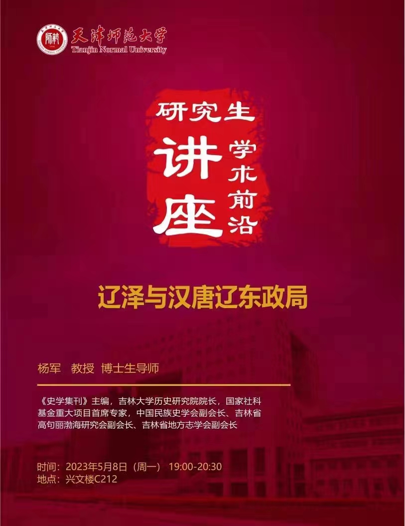 2023年5月8日,杨军教授将为两院师生带来题为《辽泽与汉唐辽东政局》的学术讲座,讲座详情见海报。