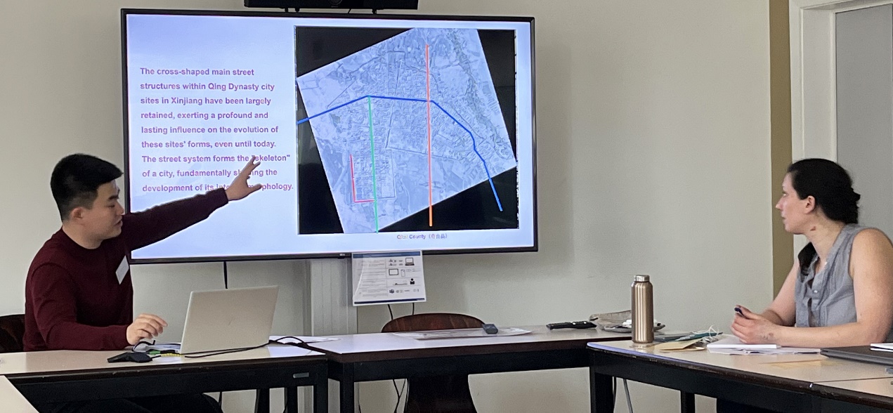 郝园林在会议中发言题目是《Equally Significant as Han and Tang: New Discoveries in the Study of Qing Dynasty City Sites in Xinjiang》,介绍了其团队对新疆249座清代城址的系统考古调查成果。通过建立数据库,揭示了清代城市遗址的多样类型,包括驻防城、卡伦、营盘、地方防御性城池等,它们规模不尽相同,大部分出于军事驻防或防御目的而建。其中,驻防城的规制较为统一,受到了明代卫所城模式的影响。就在调查中发现的北城墙保存情况相对较好的现象,其团队也提出了解释的“三因素”模型框架:北城墙的固有特征;街道的主流走向;城市形态学中的“城市边缘”概念。郝园林的报告引起了热烈讨论,其就其他学者提出的新疆城市选址、城市功能、资料来源等问题做出回应,气氛热烈。会议中郝园林积极与中外学者交流,建立了友谊,并就接下来的合作提出了初步设想。