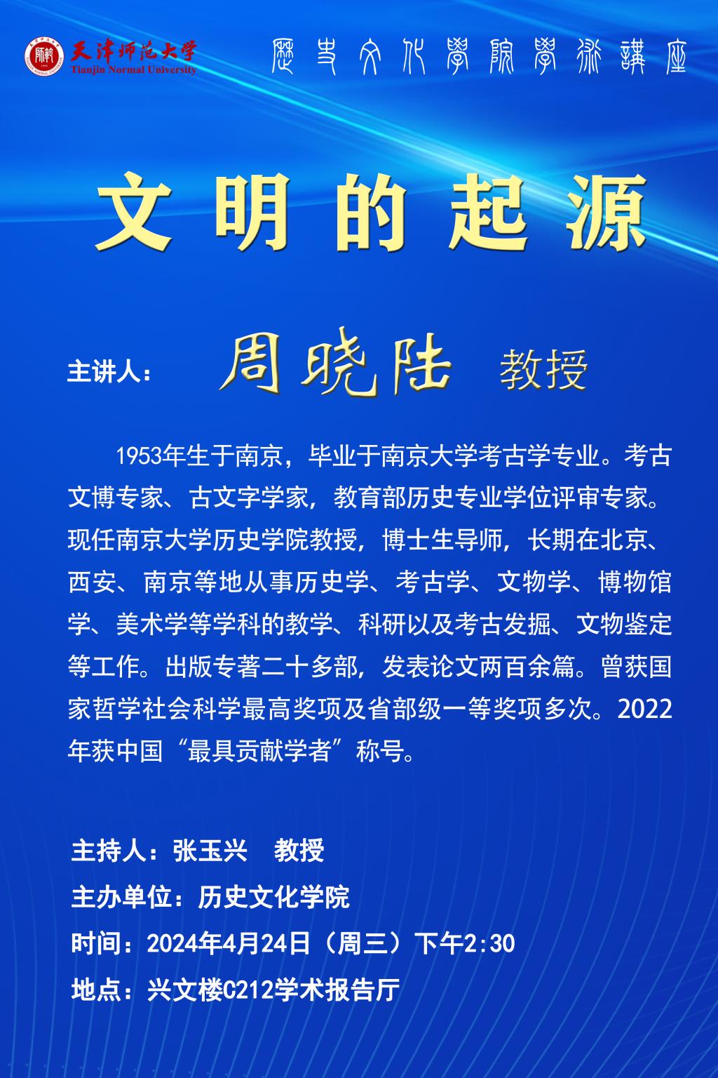 2024424日,周晓陆教授将为两院师生带来题为《文明的起源》的学术讲座,讲座详情见海报。