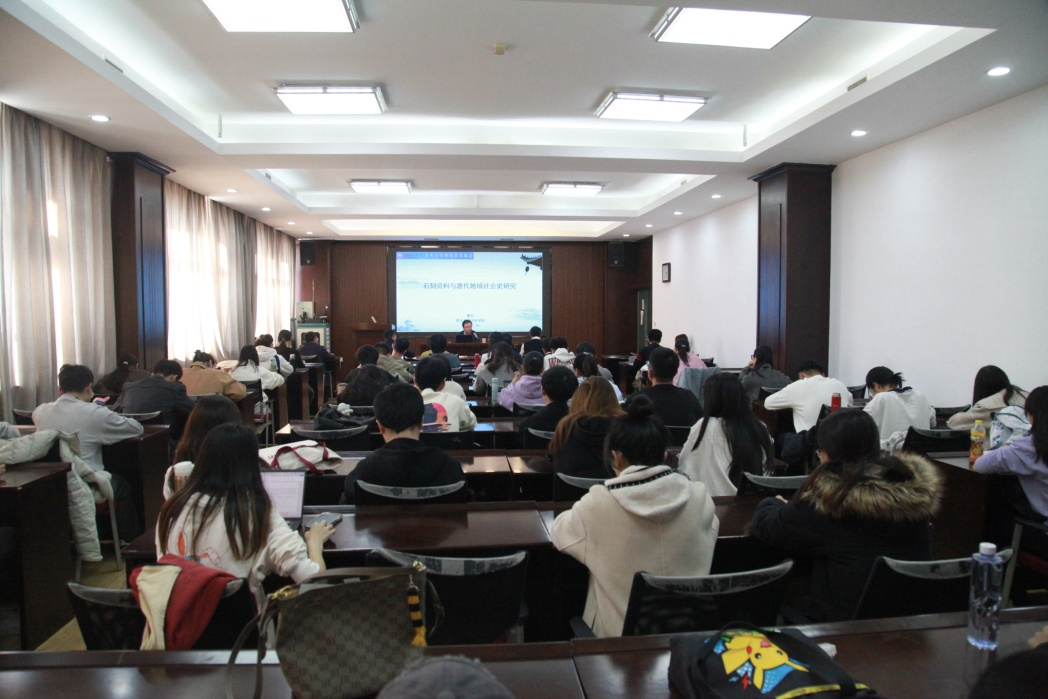 夏炎教授讲座以唐代归州地区“黄魔神庙”故事为切入点,娓娓道来,层层递进,讲述了“黄魔神庙”造神缘由、庙名诞生、修庙立碑等问题,探讨唐代世家大族、地方官府和地域人群之间的互动关系,揭示了晚唐世家大族如何通过信仰的纽带在地域社会寻求新的生存空间的课题。讲座中, 夏炎教授还提醒同学们唐史研究要特别注意史料的细节,同时尽可能地沿着前辈学者足迹继续深耕。