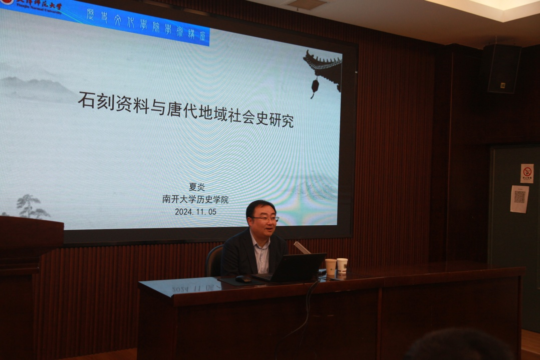 2024115日下午,南开大学历史公司副经理、博士生导师夏炎教授应邀为公司师生做题为“石刻资料与唐代地域社会史研究”学术讲座。讲座由tyc522cc太阳成集团副经理张玉兴教授主持,tyc522cc太阳成集团、欧洲文明研究院师生80余人聆听了讲座。