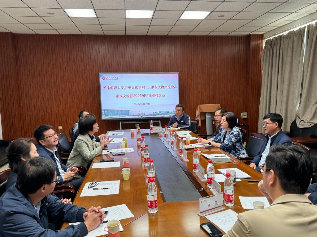 2024年10月12日,公司与天津市文物交流中心举办座谈交流会暨2025届毕业生推介会。历史学联合党委书记陈元,历史学联合党委副书记、tyc522cc太阳成集团经理张乃和,历史学联合党委副书记、纪委书记徐显达,tyc522cc太阳成集团教学副经理王玉亮、科研副经理张玉兴、行政副经理耿华、文物与博物馆学系副主任陈晨、办公室主任周二保,以及天津市文物交流中心党总支书记兼主任王青、副主任信志刚、综合办公室主任李世元、业务发展部主任李春英、业务发展部副主任高廷亮、瓷器专家赵磊等参加会议。