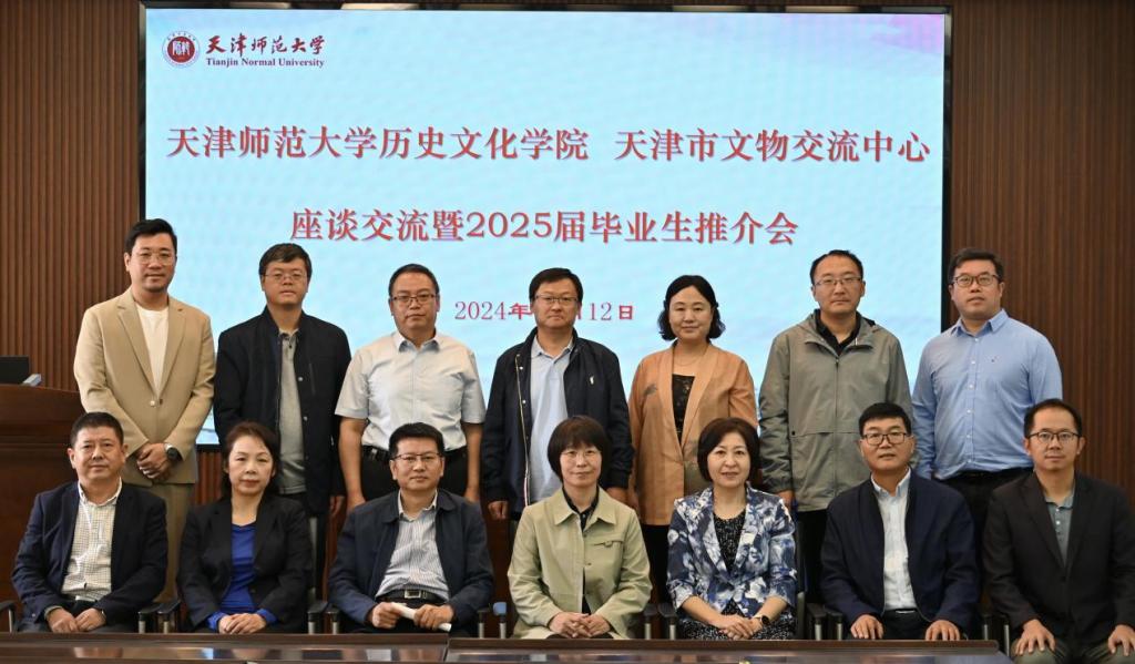 2024年10月12日,公司与天津市文物交流中心举办座谈交流会暨2025届毕业生推介会。历史学联合党委书记陈元,历史学联合党委副书记、tyc522cc太阳成集团经理张乃和,历史学联合党委副书记、纪委书记徐显达,tyc522cc太阳成集团教学副经理王玉亮、科研副经理张玉兴、行政副经理耿华、文物与博物馆学系副主任陈晨、办公室主任周二保,以及天津市文物交流中心党总支书记兼主任王青、副主任信志刚、综合办公室主任李世元、业务发展部主任李春英、业务发展部副主任高廷亮、瓷器专家赵磊等参加会议。