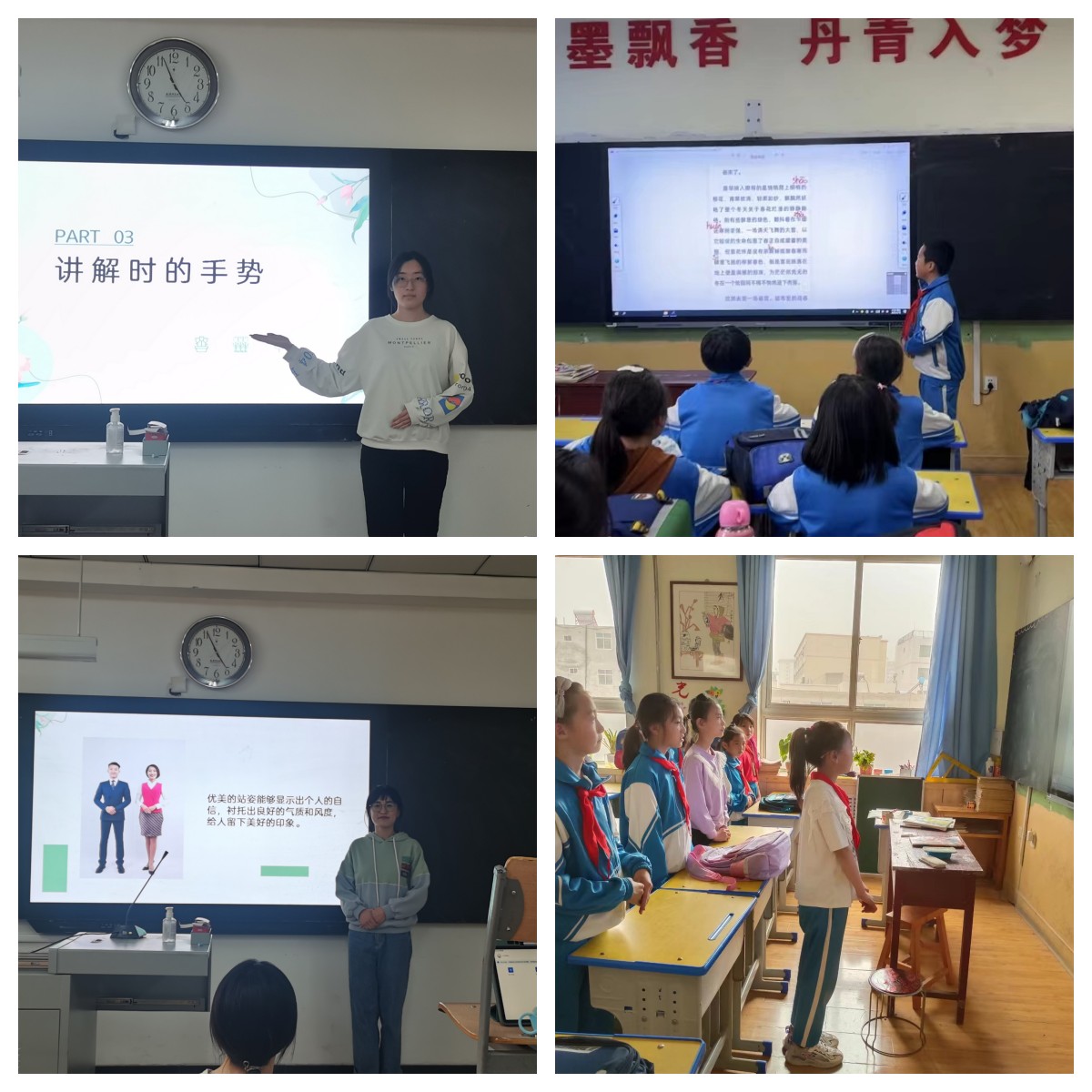 引导支部党员走进博物馆、走进中小学、走进社区,发挥历史学各专业特长讲好中国故事,传承中华优秀传统文化,一直是求是学社员工支部的特色和特长。支部党员于琪琪经过公司选拔,成为公司研究生支教团成员并于22年9月赴甘肃定西西关小学支教,在支教过程中,她了解到当地员工对传统文化知识的渴求,于是联系支部开展本次培训活动。4月13日开始,求是学社员工支部统一组织,精心安排,组织支部党员、积极分子利用课余时间,以培养中华优秀传统文化的传承者、中国故事的讲述者,切实帮助西部孩子系好人生第一粒扣子为目标,发挥自身优势、总结讲解经验、归纳讲解方法、探索授课方式,为西关小学的同学们开展了一系列形式新颖的思政课。课堂上,支部成员按照循序渐进的原则,拟定授课主题,从“讲的技巧”、“发声的方法”、“讲解仪态”等方面亲身示范,同学们认真模仿学习,为日后成为一名优秀的志愿讲解员打下了坚实的基础,并在此过程中认识到讲解员是中华优秀文化的传播者,肩负着讲好中国故事的光荣使命。