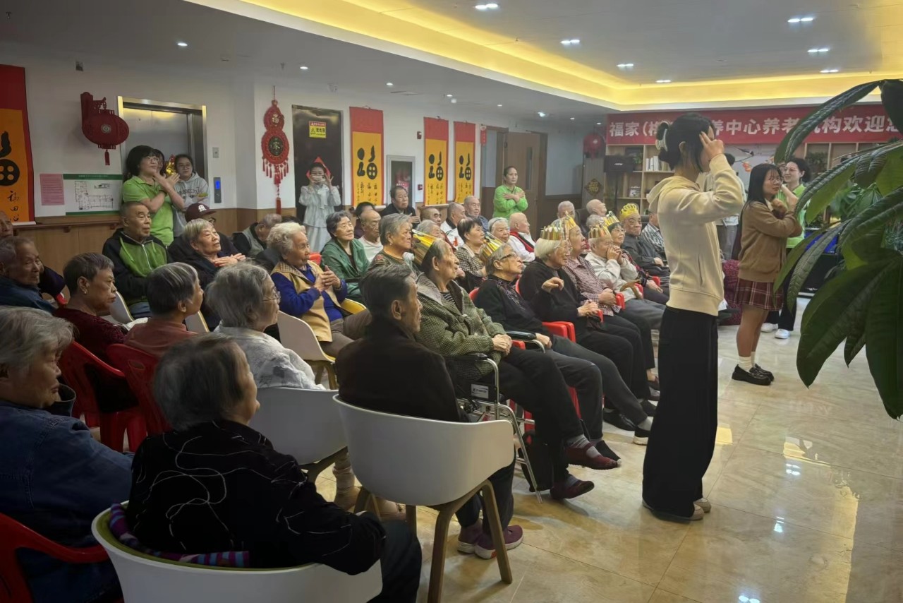 活动最后,同学们为老人们送上真挚的重阳节祝福,并为当月过生日的老人送上生日祝福、唱生日歌。
