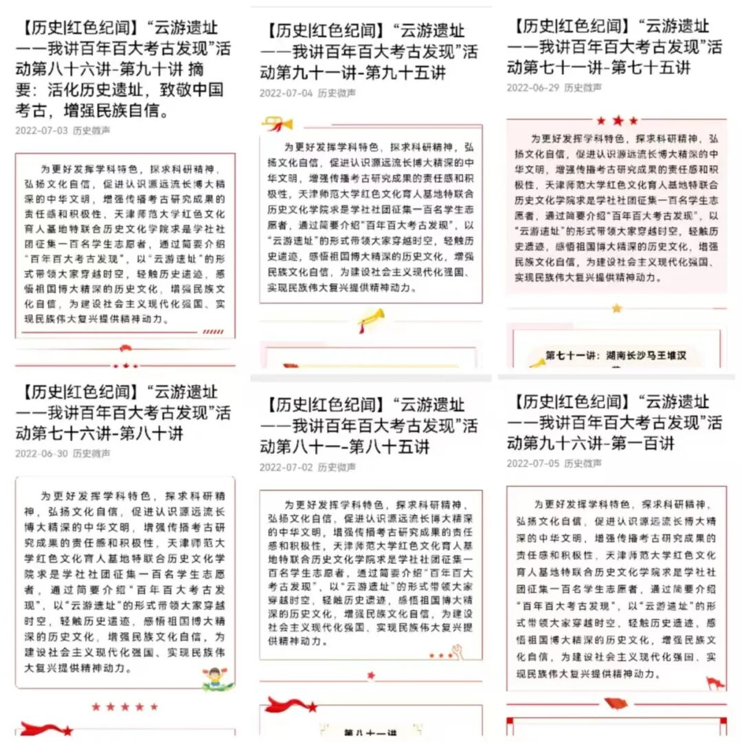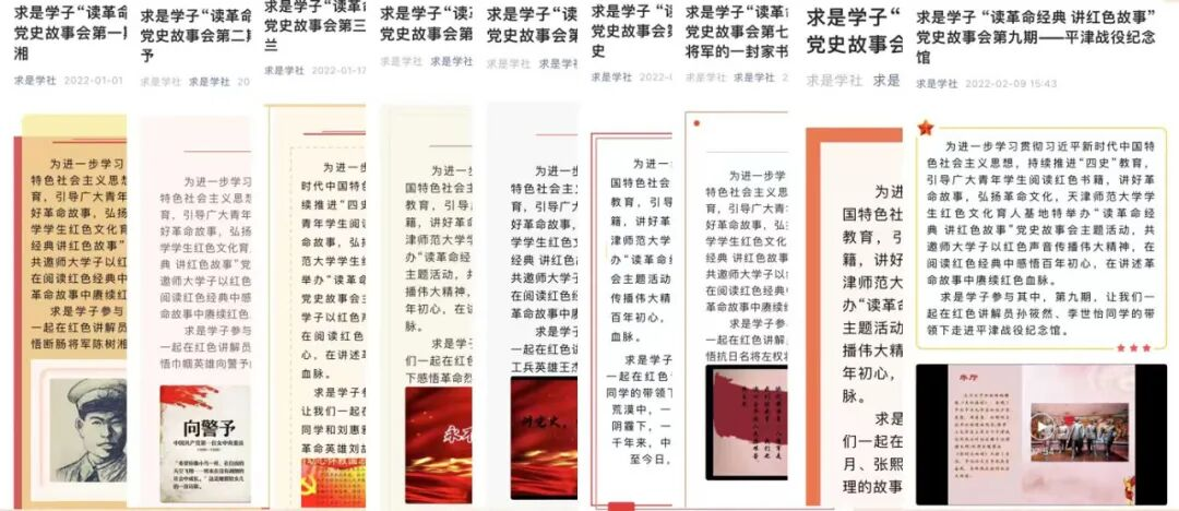 2022年12月,为迎接党的二十大胜利召开,社团成员作为主力,精心组织筹备《光辉历程——中国共产党历次全国代表大会主题展》,获天津教育报等媒体报道。