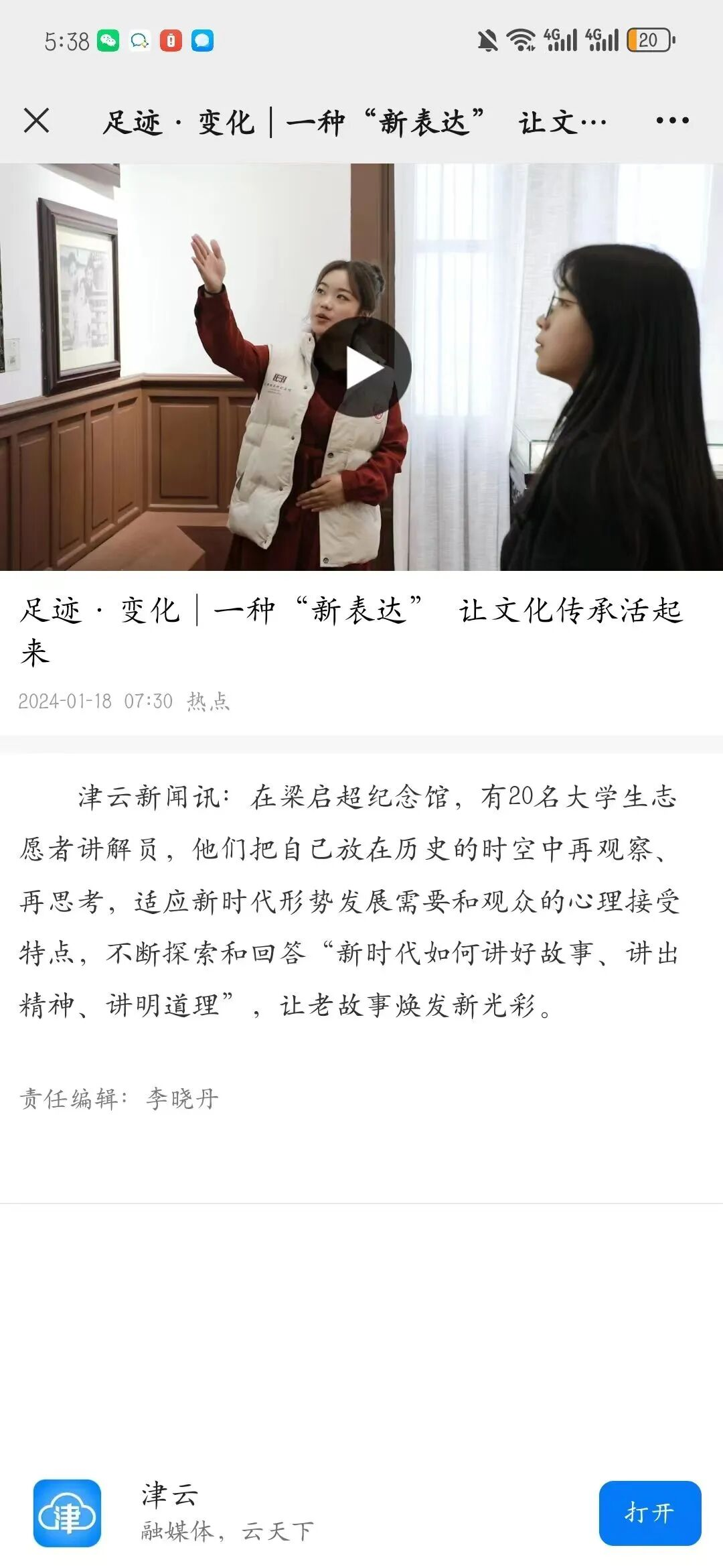 2024年,求是学社梁启超纪念馆讲解员参与拍摄津云《足迹·变化》采访视频。