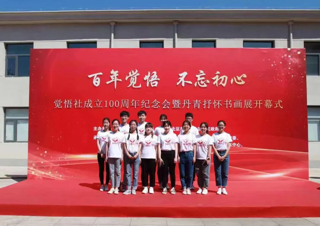 2019年9月,求是学社员工党支部党员作为青年志愿者代表在天津觉悟社成立100周年纪念会上接受市委宣传部副部长杨君毅的授旗。