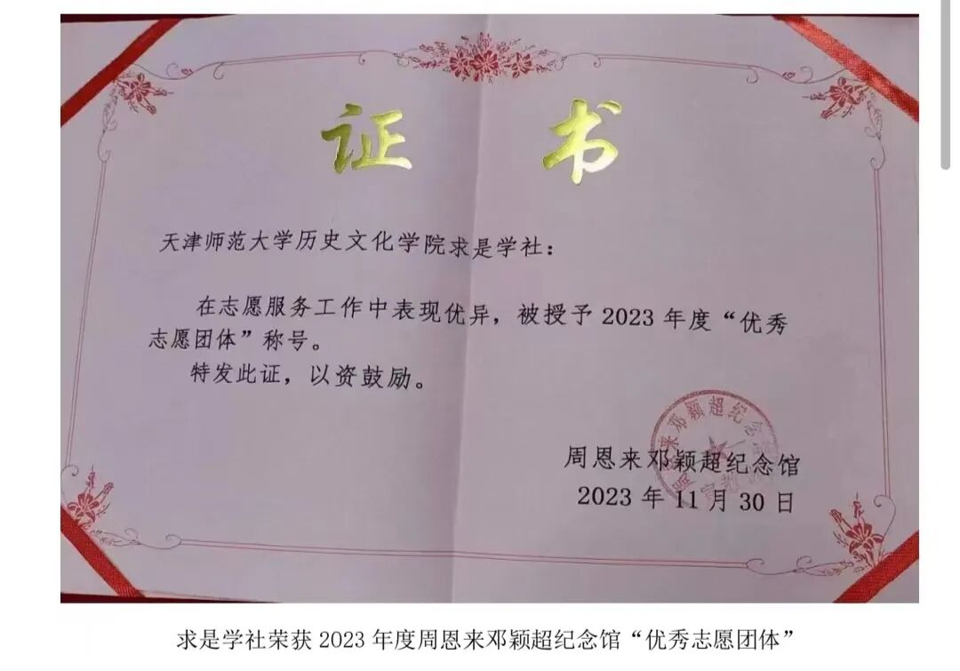 2024年,求是学社夺魁天津市高校活力社团、获评天津市新时代“终身学习品牌”。