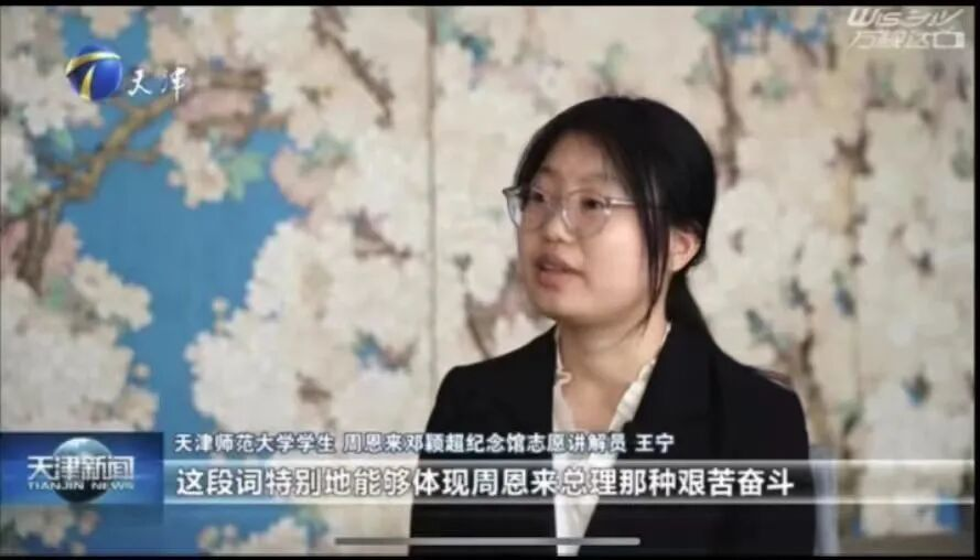 2024年,天津新闻频道对周恩来邓颖超纪念馆志愿讲解员王宁进行报道。