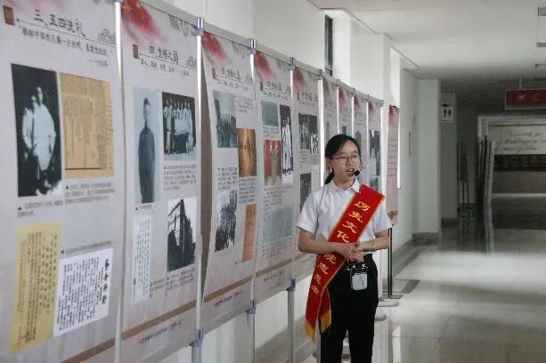 2019年4月,求是学社成员参与策展的《激扬青春百年赞歌——五四运动100周年纪念展》献礼五四百年,并由基地志愿者求是学社讲解员带领与会领导嘉宾、员工代表参观展览。