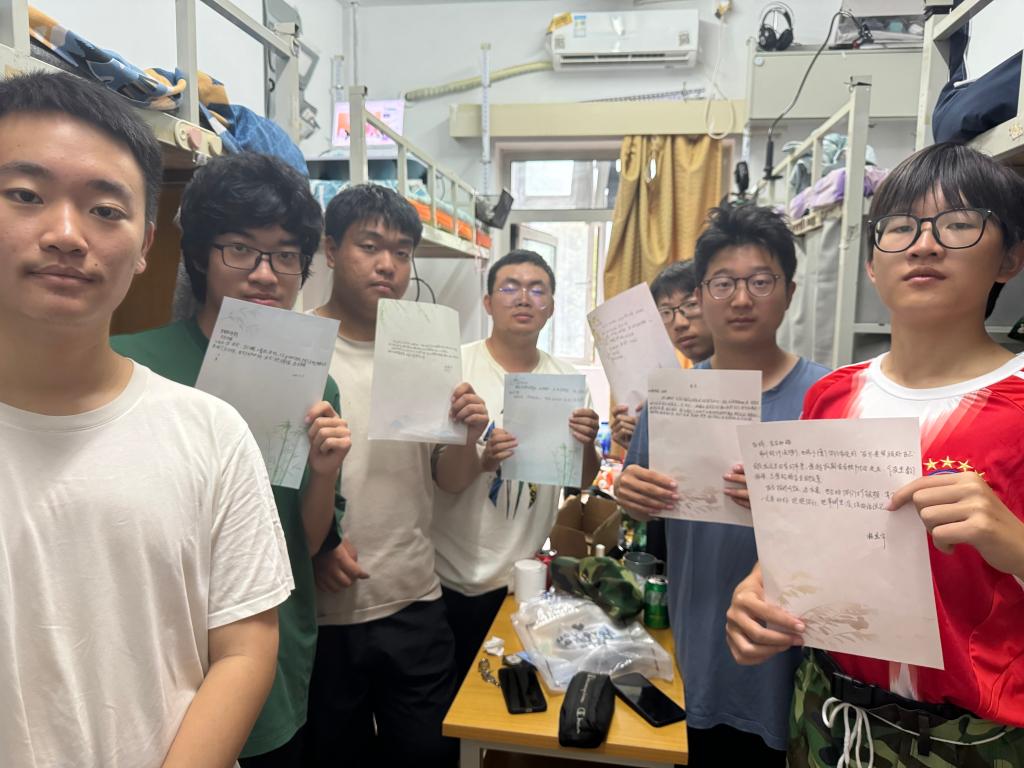 方寸信笺,载情千里;笔墨无声,情深意长。同学们安静地坐在桌前,拿起笔,认真地进行书写。这一刻宿舍里只有笔尖划过纸张的沙沙声。他们书写着入学以来的经历:军训中的汗水和坚持、和室友相处的趣事、对校园新环境的观察……字里行间,记录着真实的老员工活片段,也饱含着对远方家人的思念、感谢和关心。这不仅是一次情感的倾诉,更是一次梳理生活、表达心意、自我成长的特别时刻。