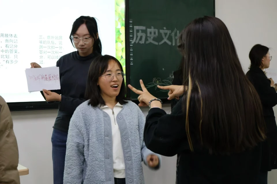 随后的“春之思·你画我猜”环节充满趣味与挑战。同学们积极热情参与,通过丰富的肢体语言演绎两会政策热词。从“乡村振兴”到“科技创新”,一个个热词在同学们的生动演绎下变得鲜活起来。在轻松愉快的氛围中,同学们对这些政策术语的理解更加深刻,同时锻炼了团队协作和沟通能力。