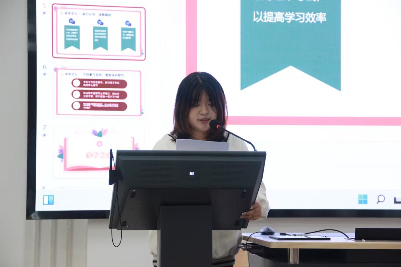 裴诗涵学姐分享了自己的学习方法,建议大家课下通过搭建框架梳理知识、课上多去思考与联想将知识串联,避免死记硬背,并在小组作业中勇于表达自己,克服上台紧张的问题。在生活方面,学姐提出要给自己设置好小目标,避免被拉开差距。最后学姐强调师范生应该尽早去接触“教育”这个领域,在实践中不断锻炼自己的能力。