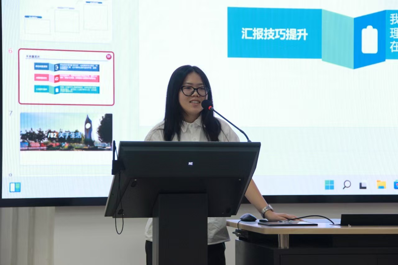 徐冉学姐详细地介绍了学习专业课的方法并且强调要养成良好的学习习惯。随后学姐提出我们应该在服务中寻找自我价值。在平衡学业与员工会、社团工作方面,学姐推荐我们制作待办清单来划分事情紧急程度,合理分配时间。最后,学姐强调我们应该勇于尝试各种竞赛、志愿活动,实现课本知识向真本事的转变。