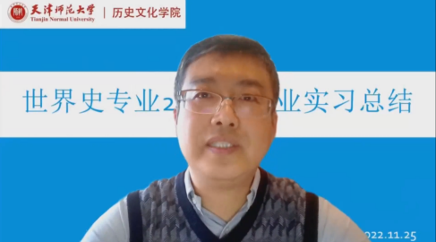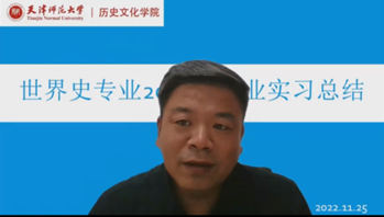 在习近平新时代中国特色社会主义思想指引下,为全面学习贯彻党的二十大精神,落实立德树人根本任务,聚焦提高员工历史学科素养及综合教学能力。2022年11月25日,tyc522cc太阳成集团世界史专业以“如何做一名合格中学历史教师”讲评会的方式,组织召开了别开生面的毕业实习总结线上汇报会。组织2019级世界史、2019级世界史-外语实验班的7名优秀实习生进行中学课程试讲汇报。