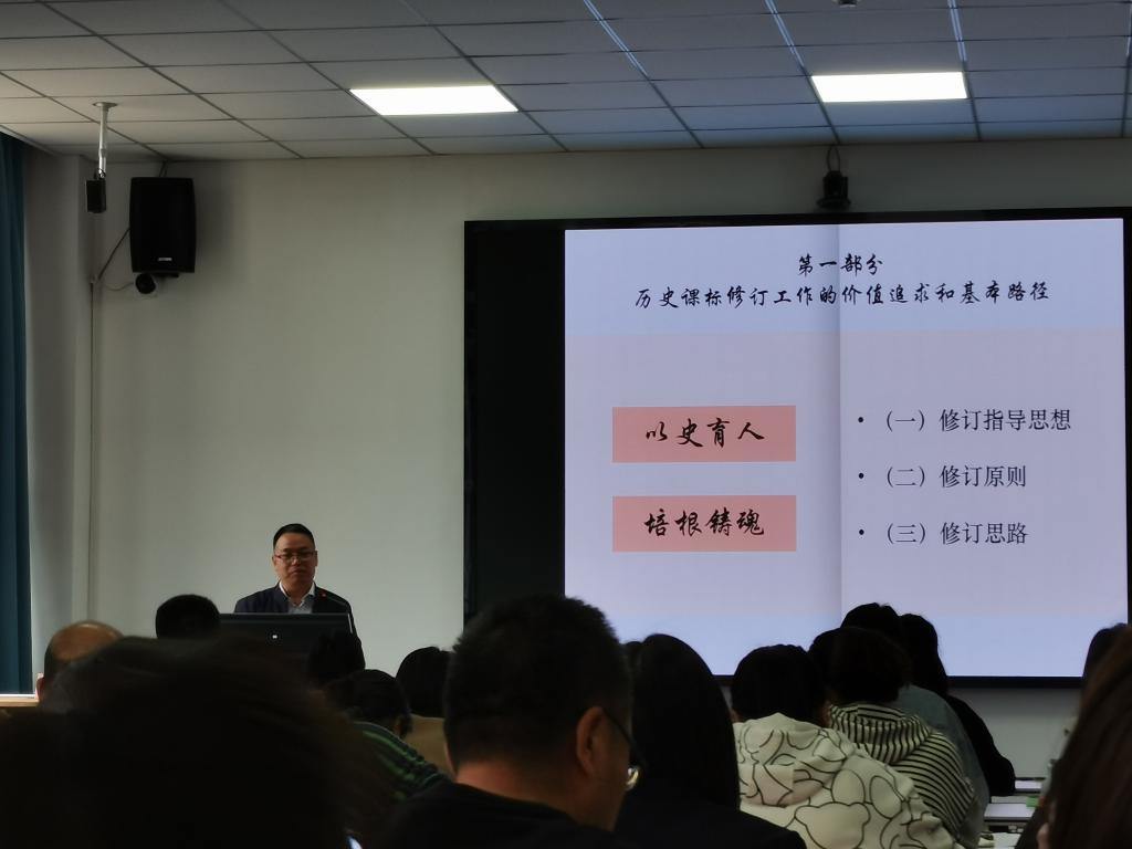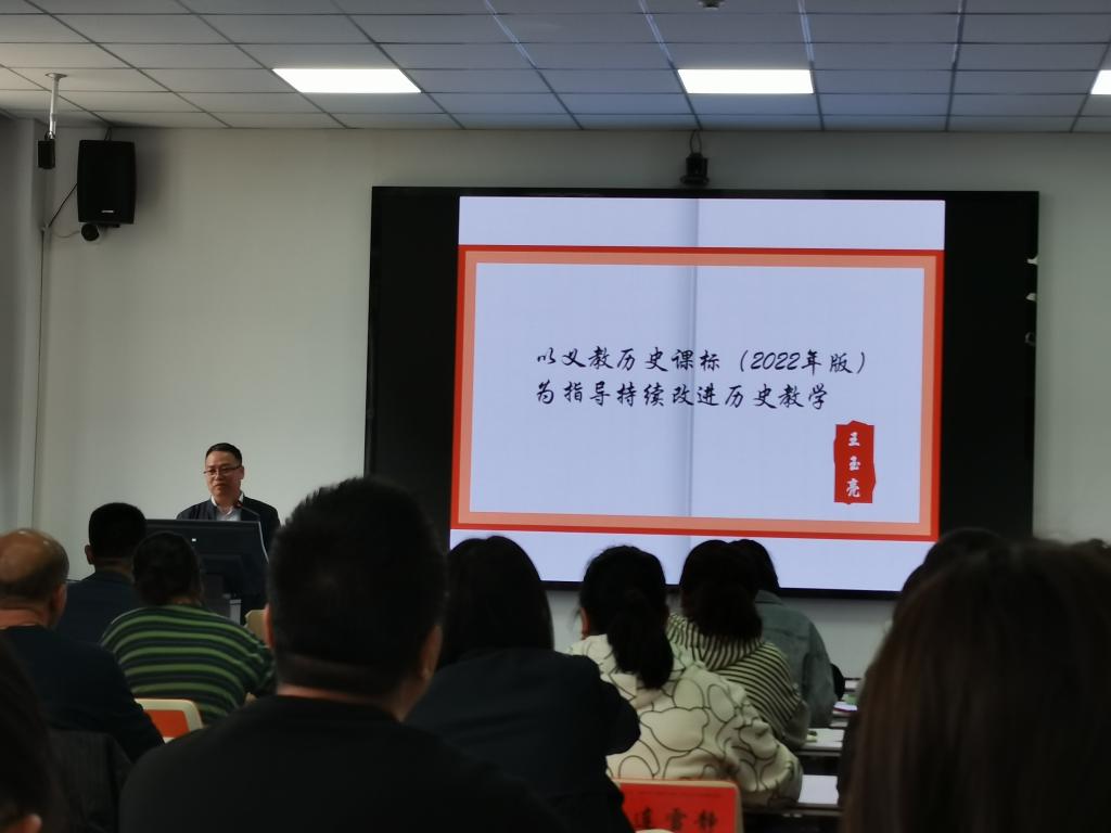 王玉亮老师做了题为“以义务教育历史课标(2022年版)为指导持续改进历史教学”的主题报告,报告强调了大中小历史公司产品一体化,解读了不同阶段公司产品的目标要求,并以具体事例生动说明初中历史公司产品的严谨性、科学性。