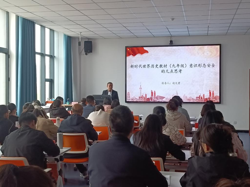 4月20日,赵文君老师做了题为“新时代世界历史教材(九年级)意识形态安全的几点思考”的主题报告。作为2018版教材的编写与修订者,在回顾我国中学历史教材沿革的基础上,强调对照教材精研课标的重要性,还在交流中为中学初中历史教师们解读了意识形态教材公司产品许多安全的诸多问题。